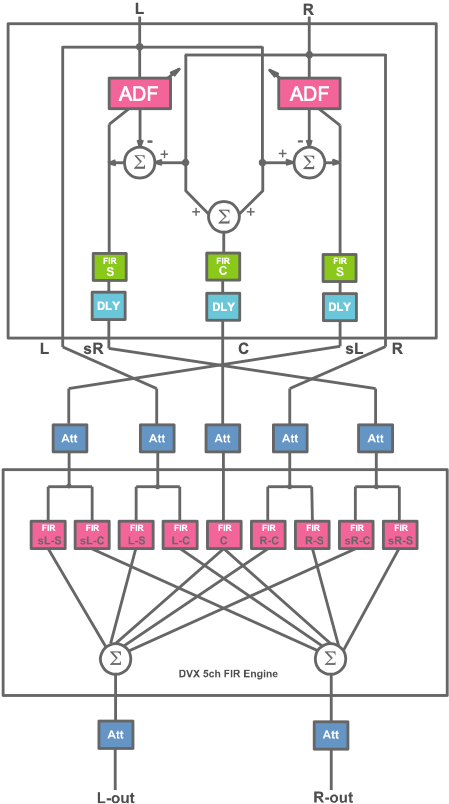 ステレオ音源から、自然で心地よい高音質のマルチチャンネルを創り出す技術です。 音の広がり感、美しい響き、ヴォーカルや楽器の臨場感など美しいハーモニーとして融合することで、疲れにくい音場を提供します。
